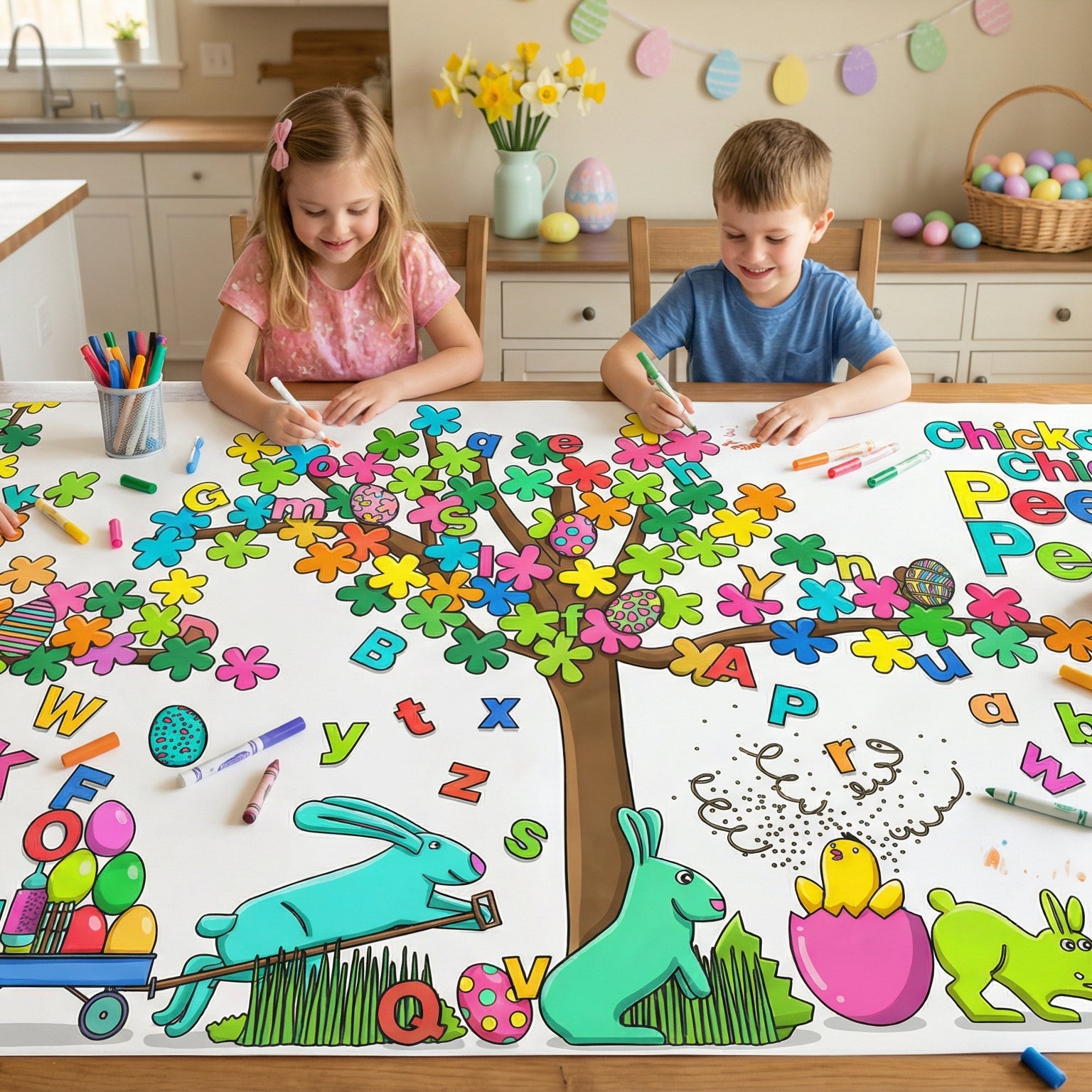 Our officially licensed Chicka Chicka Peep Peep™ Coloring Tablecloth turns your Easter table into an instant kids’ activity, no prep required.